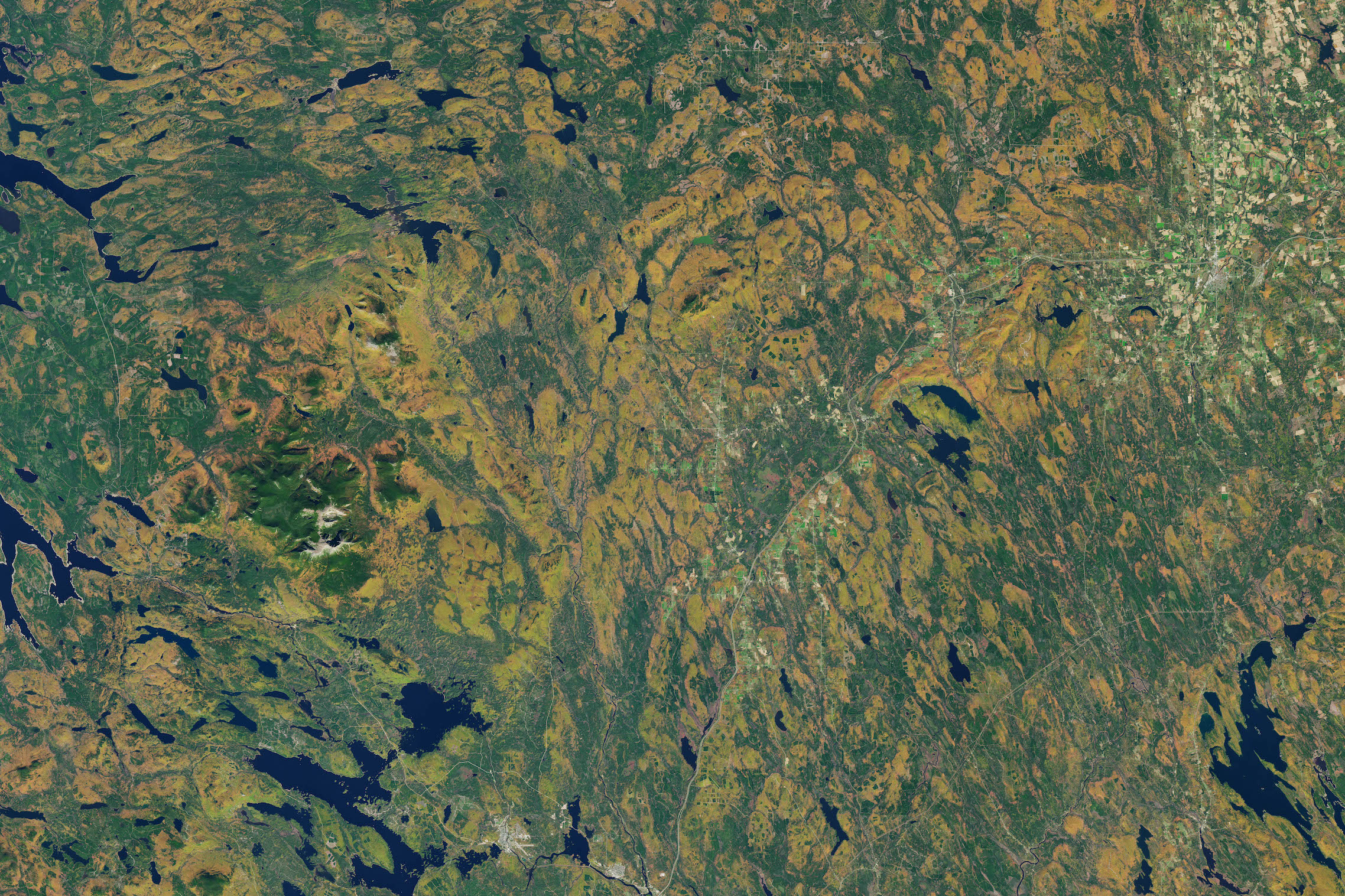 Autumn foliage in Maine is featured here in today’s Image of the Day from the NASA Earth Observatory. It’s that time of year again when the leaves change colors before falling off for the winter. Here in Baxter State Park can be seen a beautiful array of reds, oranges, tans, and greens.