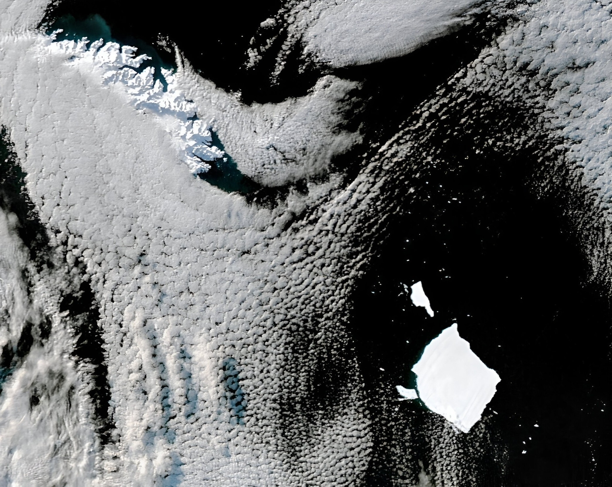 This stopover wasn’t permanent. By late May, the iceberg had broken free from the shelf, continuing its drift eastward along currents that also carried the famous A-68A iceberg in 2020.