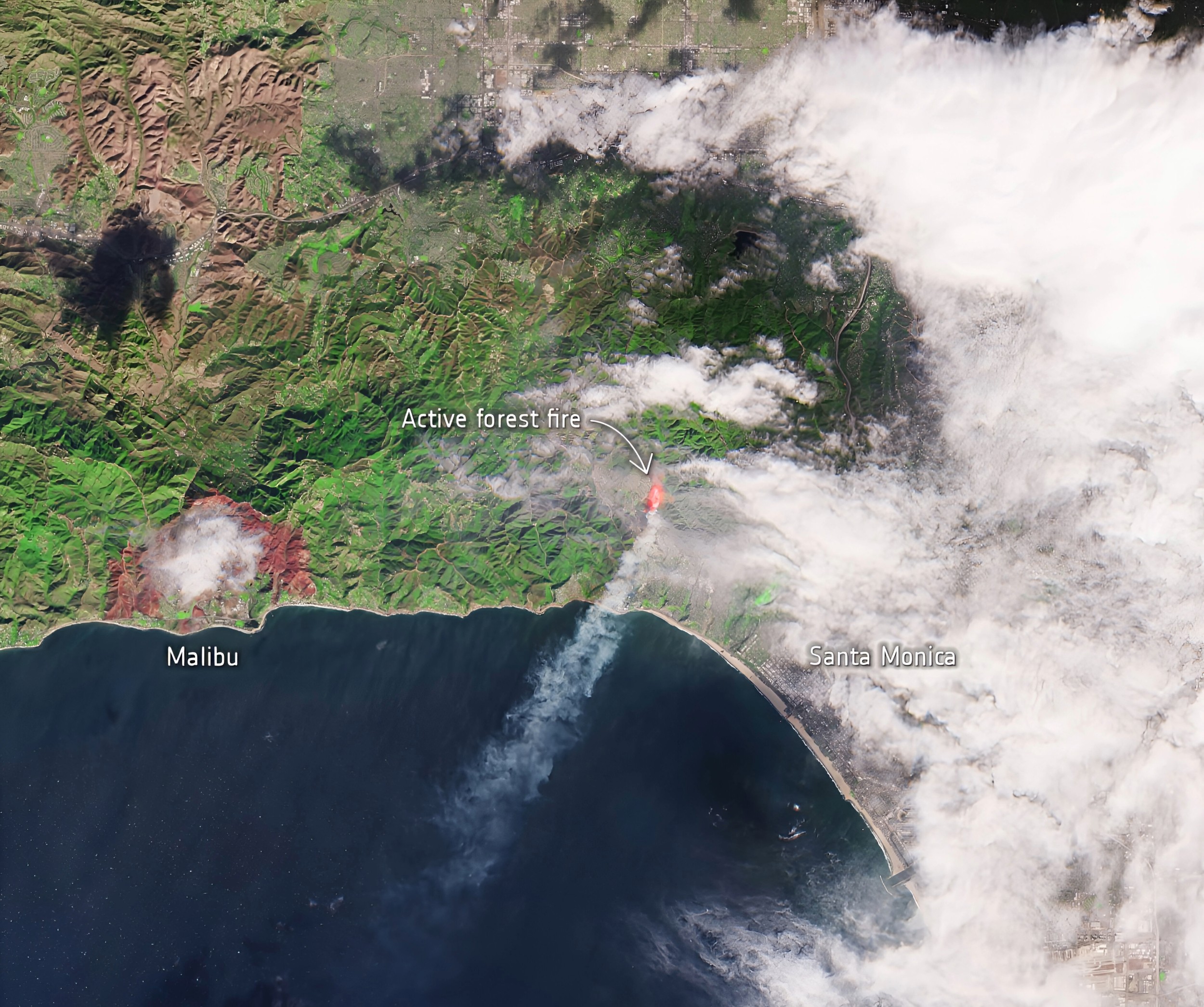 “This image captured by the Copernicus Sentinel-2 mission vividly depicts the smoke billowing from the fire near Santa Monica at 10:36 local time on January 7, 2025, not long after the fire broke out. The blaze has since caused widespread damage and concern,” noted ESA.