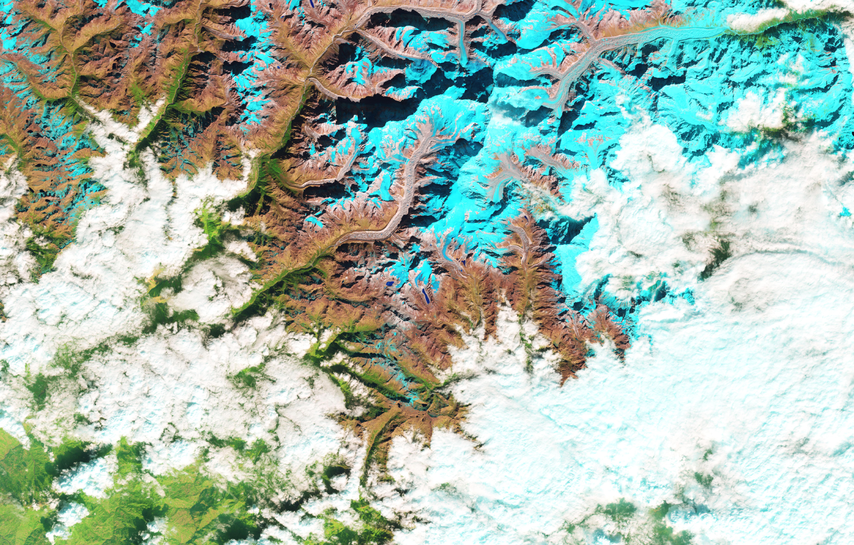 As mountain glaciers melt, lakes form and expand over time. This particular lake lies at the foot of the Kokthang Glacier, which is located on the south side of the world’s third tallest mountain – the Kanchenjunga Massif.