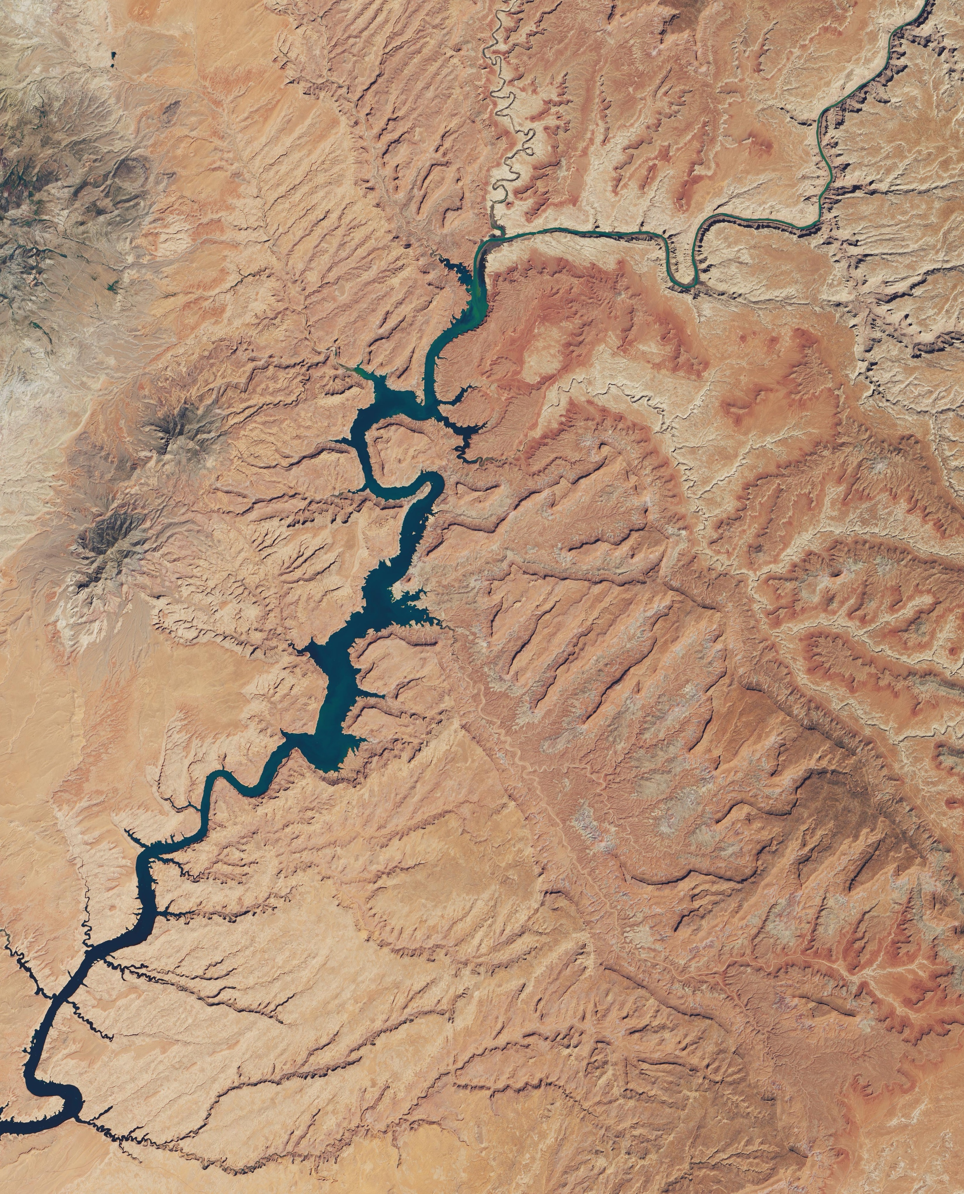 Lake Powell reaches its annual peak Today’s Image of the Day from NASA Earth Observatory features Lake Powell, the second largest water reservoir in the United States, which is spread out across southeastern Utah and northeastern Arizona.