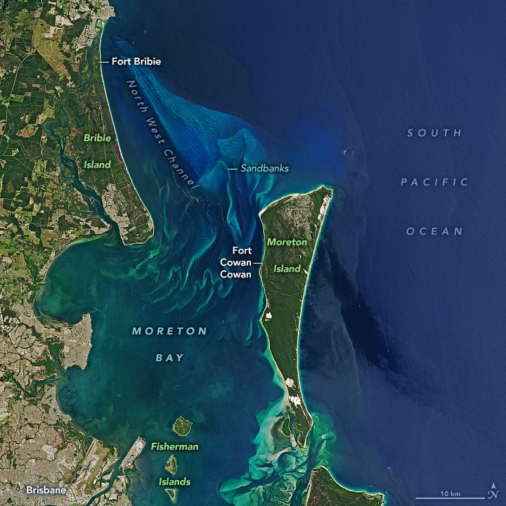 Today’s Image of the Day from NASA Earth Observatory features Moreton Bay, which is located on the eastern coast of Australia near Brisbane.