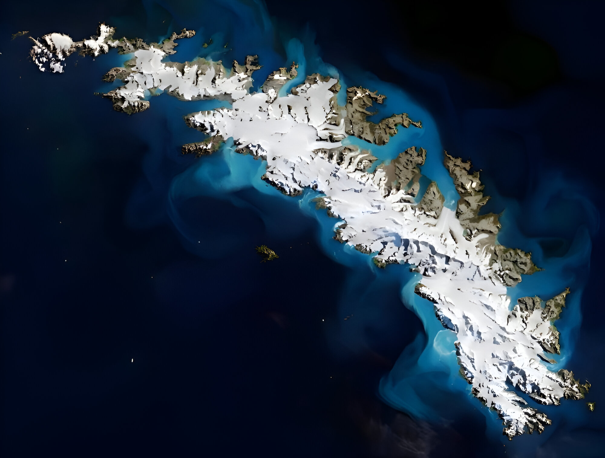 The island is dominated by mountains, glaciers, and fjords. Its highest peak, Mount Paget, rises to 2,935 meters, making it one of the tallest in the region.