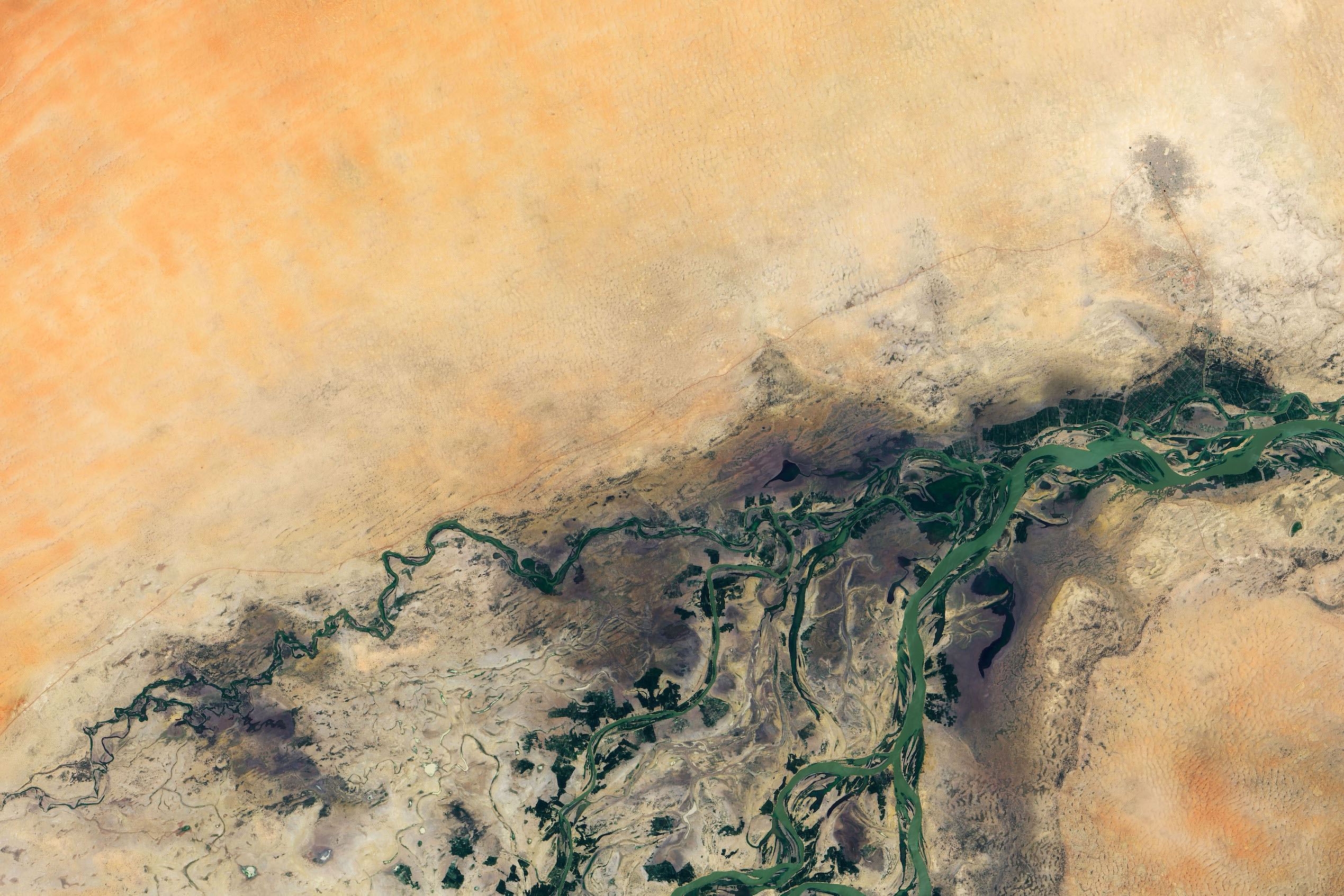 This Image of the Day from NASA Earth Observatory features the city of Timbuktu in the Sahara Desert. Timbuktu in the Sahara Desert is so remote that two long roads are the only reliable ways to access the city. In medieval times, however, Timbuktu served as a major trading hub where people met to exchange salt, gold, and ivory.