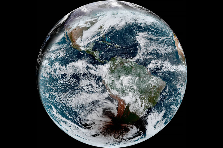 The image was captured by the Advanced Baseline Imager (ABI) on Geostationary Operational Environmental Satellite 16 (GOES-16).