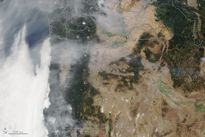 Today’s Image of the Day from NASA Earth Observatory shows the massive amount of smoke produced by fires in Oregon. Wildfire smoke hovers over Oregon shown in image above.