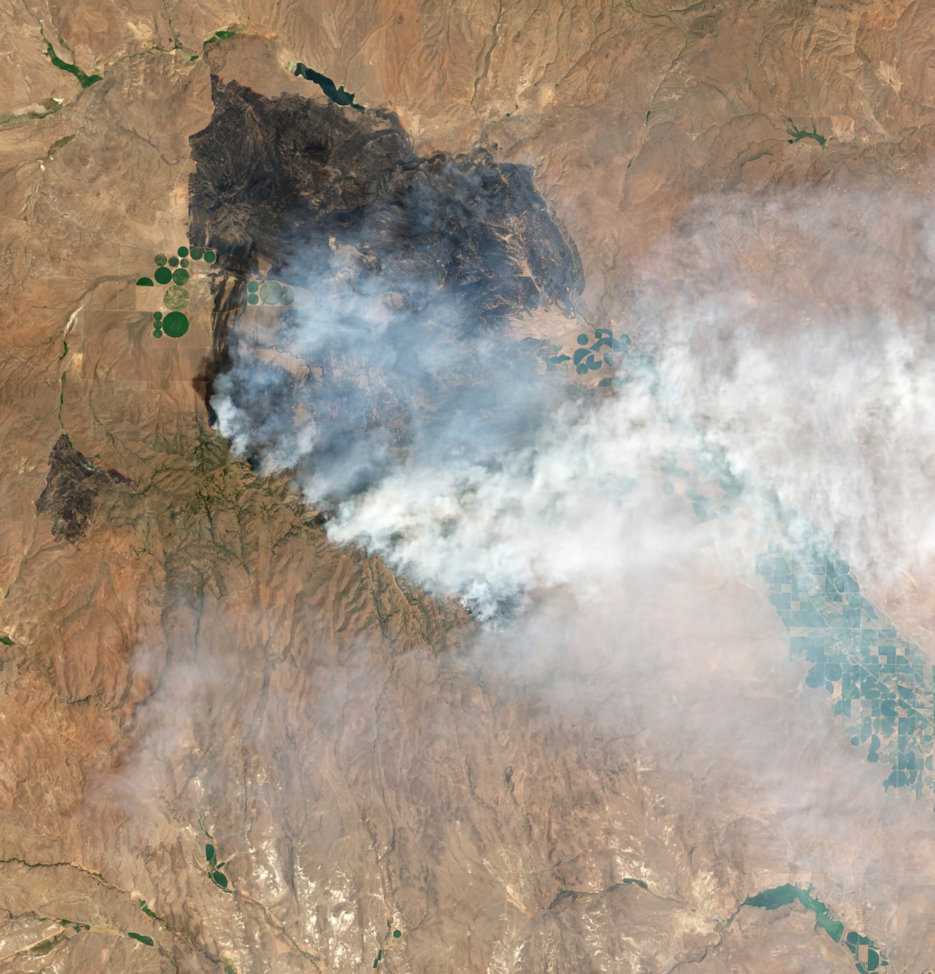 “The fire ignited on the morning of July 11 in an area of open rangeland near Brogan, a small town in eastern Oregon. Blistering heat, low humidity, and high winds allowed the fire to spread quickly to the south. Smoke billowed from the fire as it burned through dry grasses and shrubs,” said NASA.